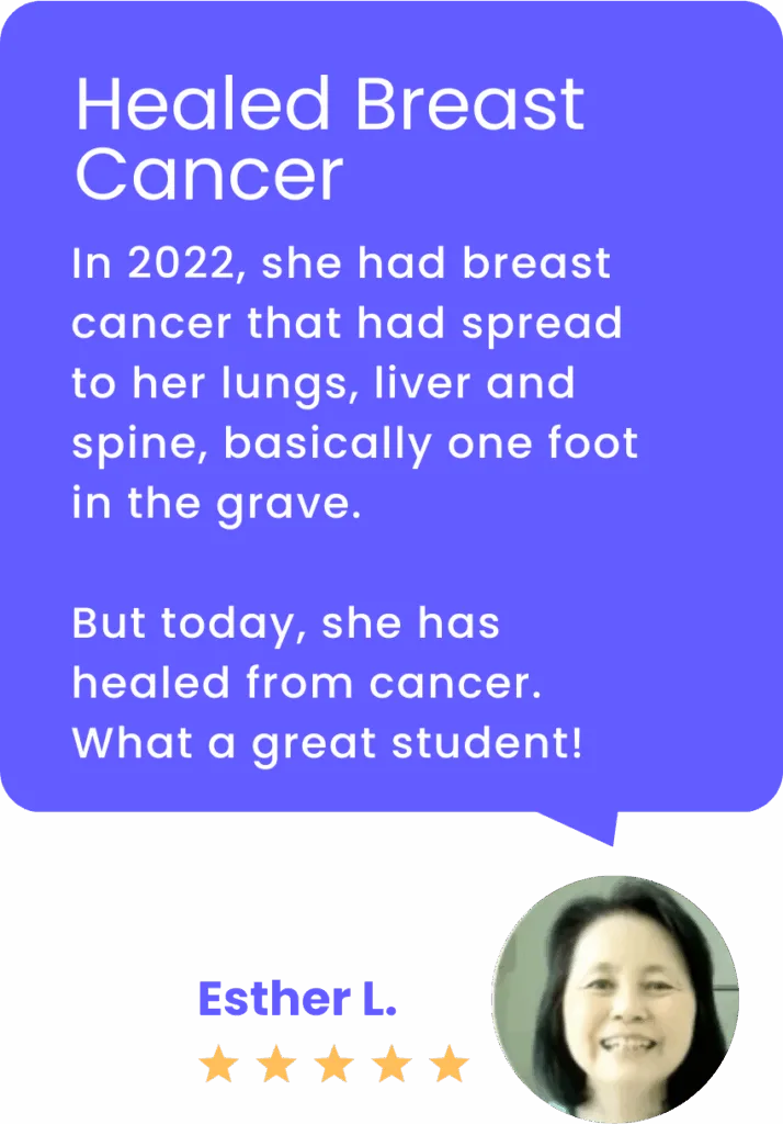 This is Esther, she healed her breast Cancer that spread to her lungs, liver and spine